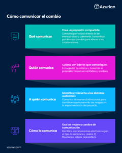 La comunicación del cambio es un factor decisivo para el éxito de los proyectos de transformación. No se trata solo de informar avances, sino de ayudar a que las personas comprendan el propósito del cambio, se alineen con los objetivos y participen de forma activa en la adopción de nuevas formas de trabajo.